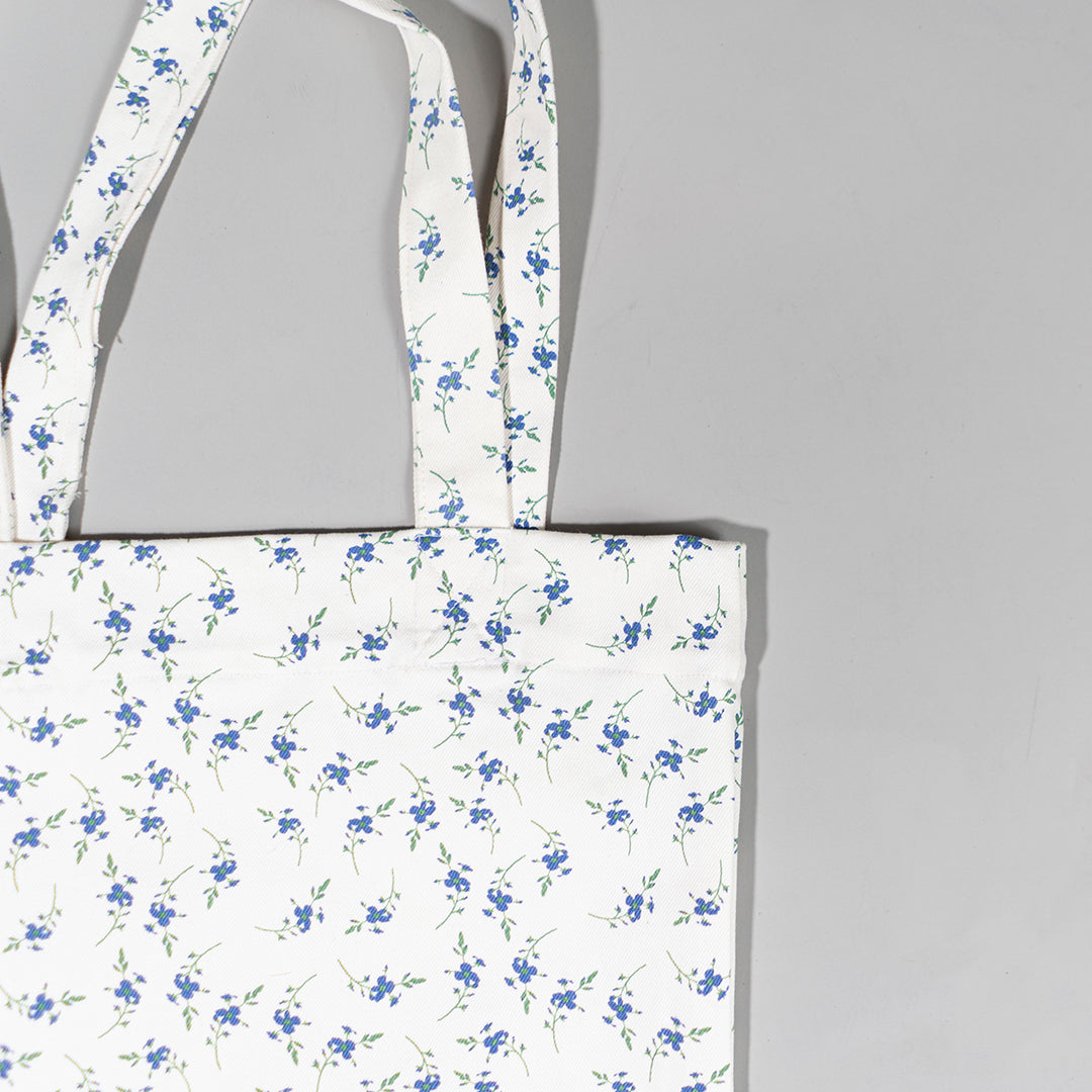The Bluebud Breeze Tote is your go-to for quiet charm and everyday function. Crafted from sturdy canvas with an all-over print of dainty blue buds (or tiny berries — you decide), this tote balances minimalism with just enough personality.