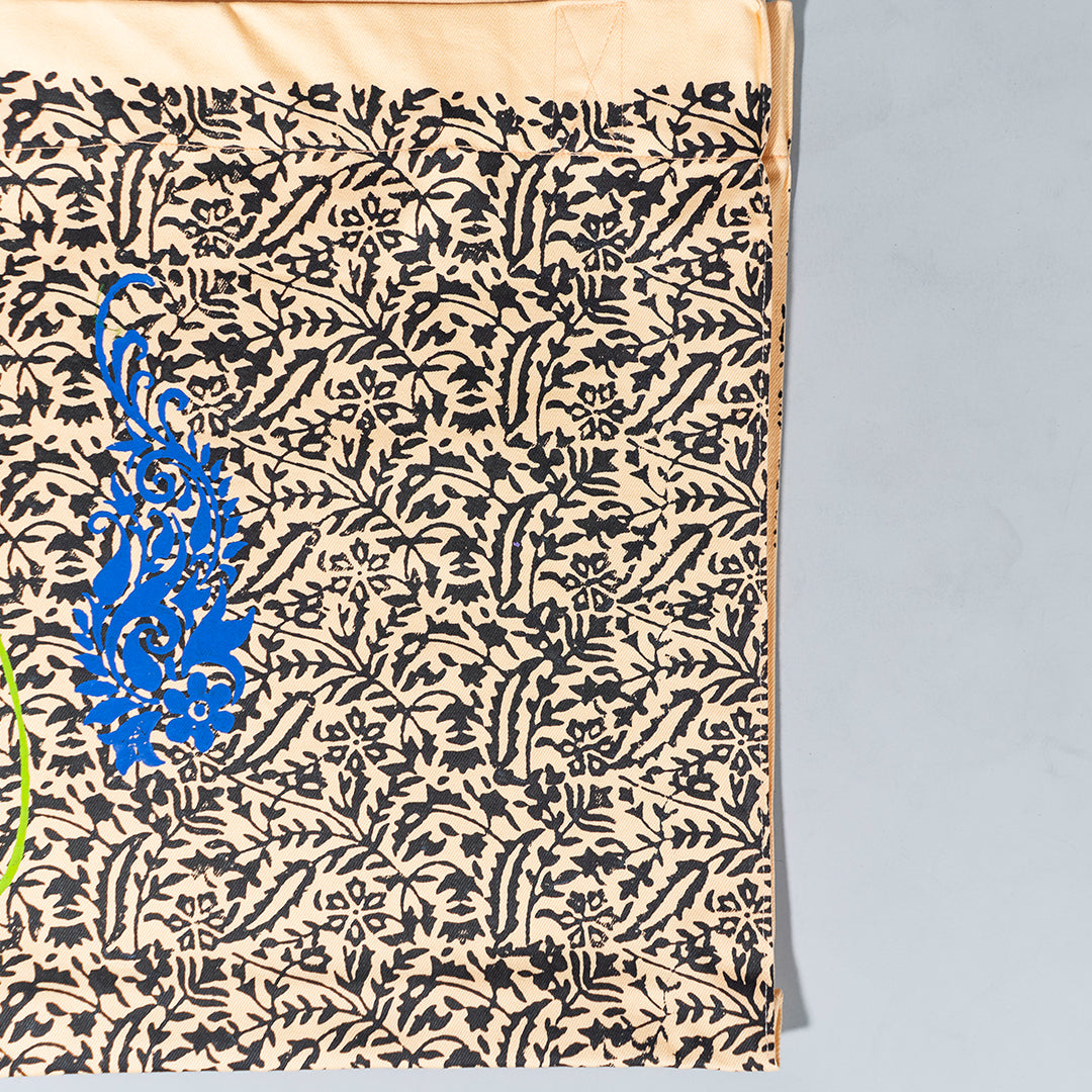 Spacious, striking, and stitched for daily use — this one-of-a-kind capacity tote is made from upcycled peach canvas and block-printed by hand in a bold, all-over botanical pattern. With added width, it holds more than your average tote, making it ideal for heavier hauls, laptops, books, or an on-the-go lifestyle.